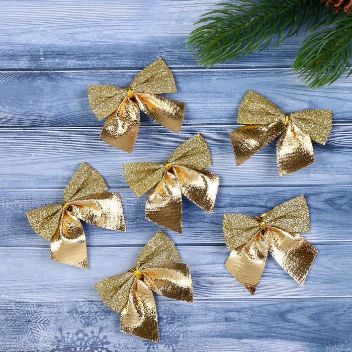 Украшение ёлочное "Бантик с блеском" (набор 8 шт) 4,5х5,5 см, золото преобразят новогоднюю ель, также ими можно украсить и любые другие предметы. Сделайте праздничное убранство сияющим!