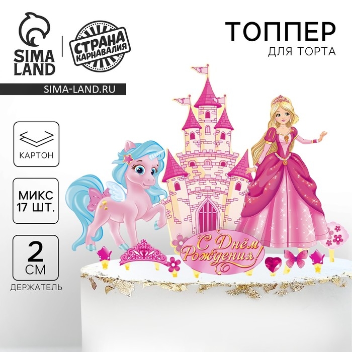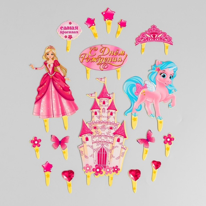 Набор топперов для украшения торта «С днём рождения!», принцесса