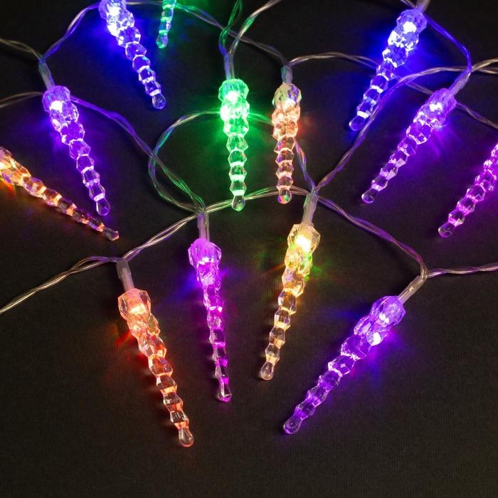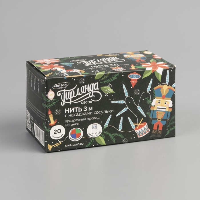 Гирлянда «Нить» 3 м с насадками «Сосульки 7,5 см», IP20, прозрачная нить, 20 LED, свечение мульти (RG/RB), мигание, USB