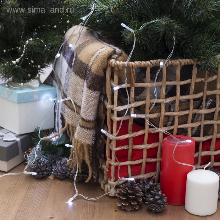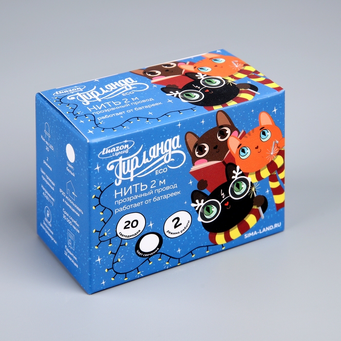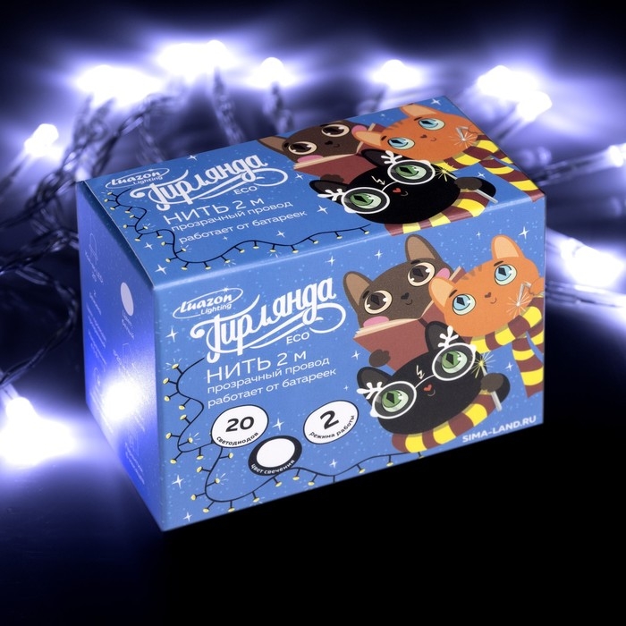 Гирлянда «Нить» 2 м, IP20, прозрачная нить, 20 LED, свечение белое, 2 режима, AAх3