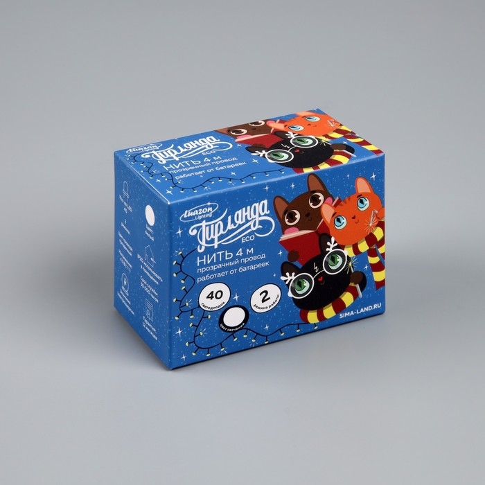 Гирлянда «Нить» 4 м, IP20, прозрачная нить, 40 LED, 2 режима, батарейки AAх3 (нет в комплекте), свечение белое