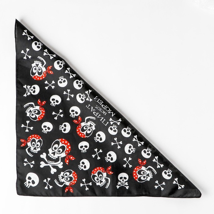 Повяжите бандану на лицо, она прекрасно защитит дыхательные органы от пыли. А на шее, рюкзаке или запястье станет стильным аксессуаром. Такой платок отлично выполнит свою основную функцию: оградит голову от солнечных лучей. А тематический принт позволит создать оригинальный образ для пиратской вечеринки.