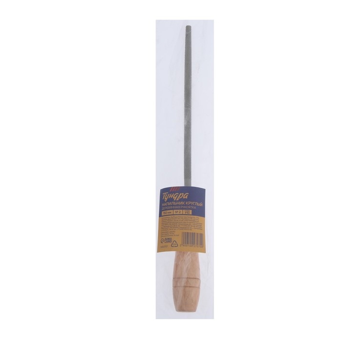 Напильник ТУНДРА, круглый, сталь У10, деревянная рукоятка, №2, 200 мм