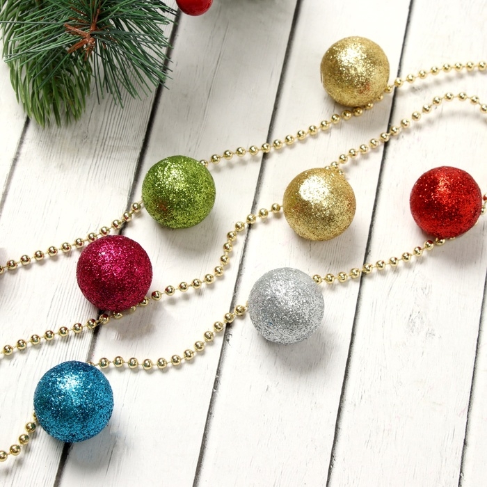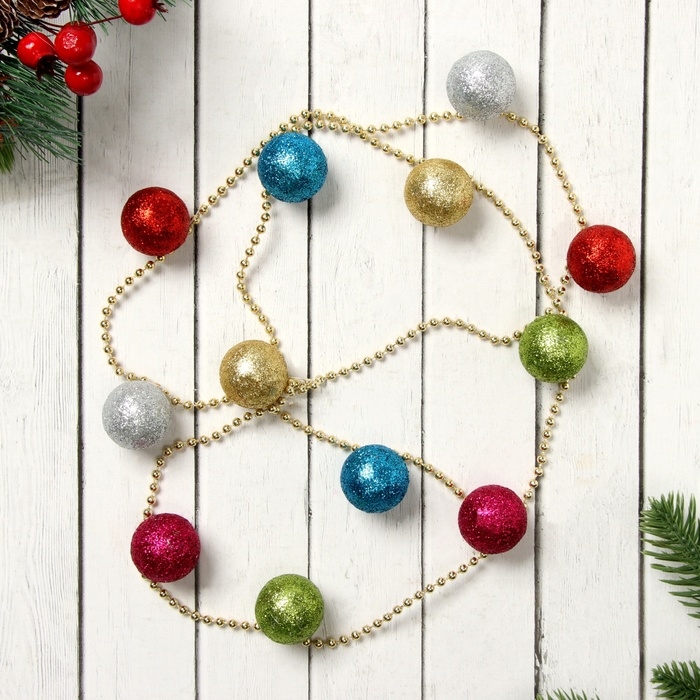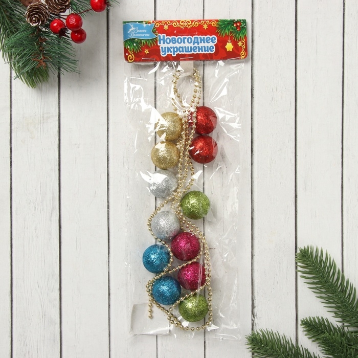 Бусы на ёлку 1,2 м "Разноцветные шарики" d-3 см