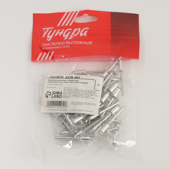 Заклёпки ТУНДРА krep, вытяжные, алюминий-сталь, 4,8х10 мм, неокрашенные, 50 шт