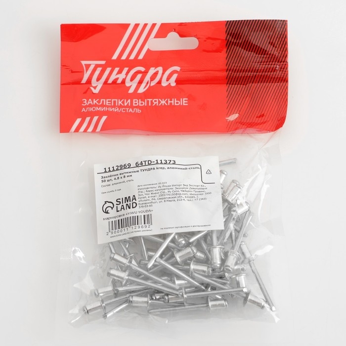 Заклёпки ТУНДРА krep, вытяжные, алюминий-сталь, 4,8х8 мм, неокрашенные, 50 шт