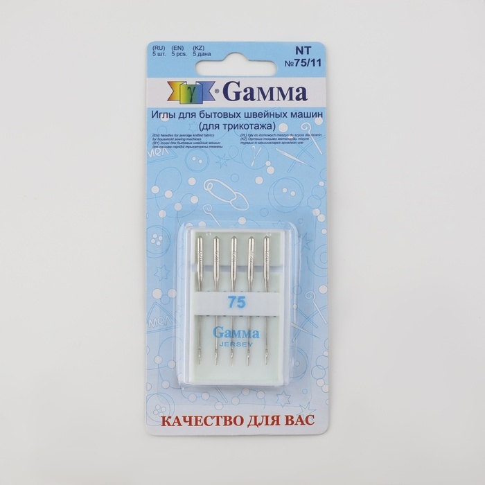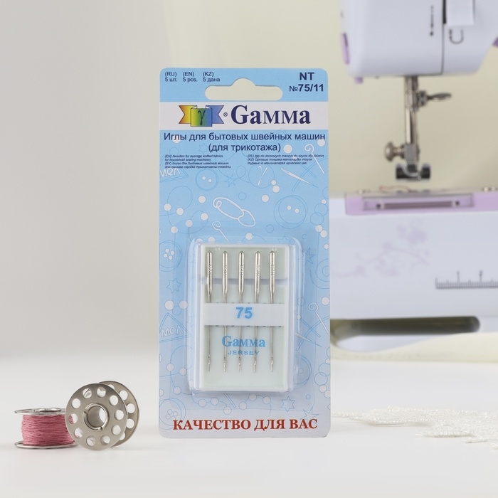 Иглы для бытовых швейных машин, для трикотажа, №75/11, 5 шт, NT