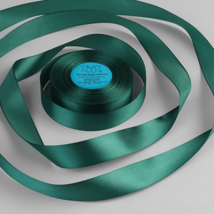 Лента атласная, 25 мм × 33 ± 2 м, цвет тёмно-зелёный №106