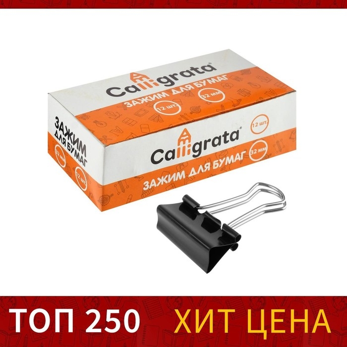 Зажимы для бумаг 51 мм, 12 штук, чёрные