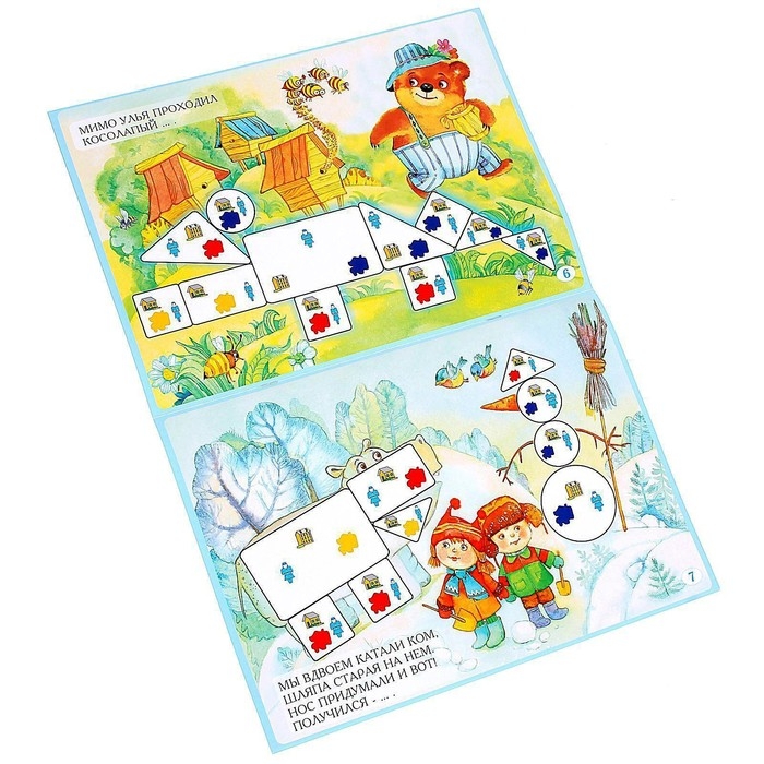 «Лепим нелепицы» — это развивающая игра с блоками Дьенеша для детей с 4-х лет, в которой представлены увлекательные загадки, на которые нужно придумать ответ. На страницах альбома затаились визуальные подсказки и ждут, когда же ими воспользуется кроха.
