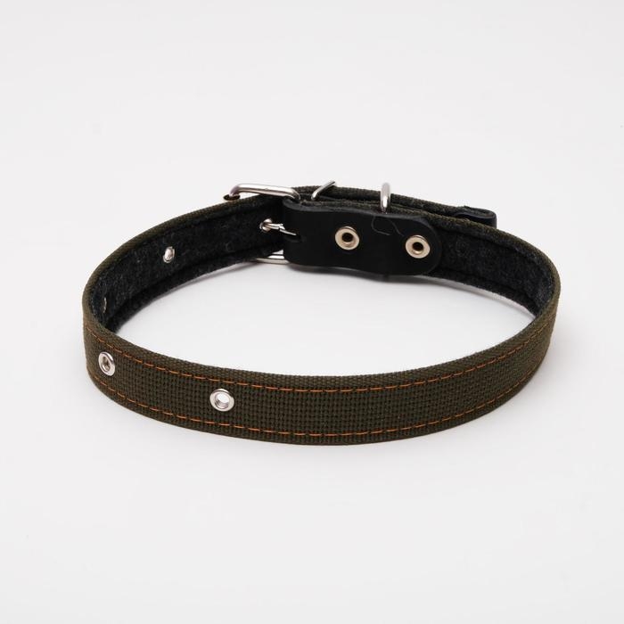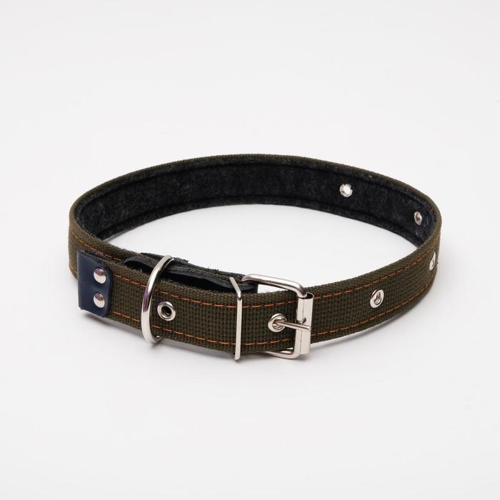 Ошейник брезентовый на фетре, 64 х 3 см, ОШ 30-55 см, тёмно-зелёный