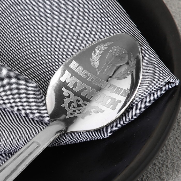 Ложка чайная с гравировкой «Настоящий мужик», на подарочной открытке, 3 х 14 см.