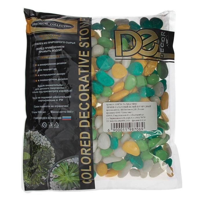 Грунт для аквариума "Галька цветная, лимонный-салатовый-белый-изумрудный" 800г фр 8-12 мм