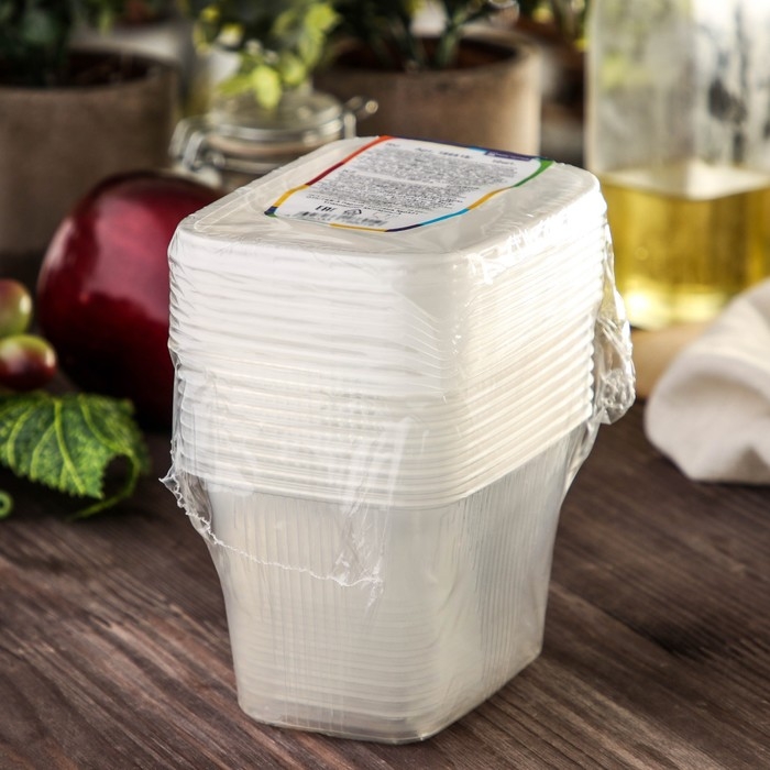 Контейнер пластиковый одноразовый с крышкой, 10 шт, 350 мл, 10,8×8,2×7 см, цвет прозрачный
