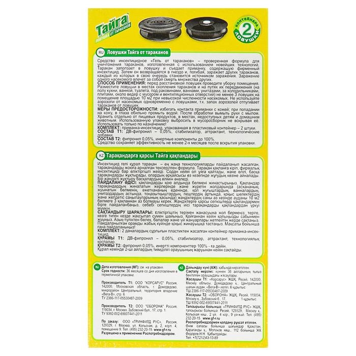 Клеевая ловушка ТАЙГА - мощное и эффективное, без запаха для быстрого уничтожения тараканов в Вашем доме или квартире. Помимо клея, в составе средства используется профессиональный нетоксичный феромон, привлекающий насекомых, которые приходят на его запах и прилипают на наклейку намертво. Абсолютно безвредно для человека и домашних животных. "Домик" идеален для применения там, где опасно оставлять отраву в виде таблеток, порошков, гранул: например в детских садах, школах или больницах . Они просты в применении и могут быть установлены в любом месте, в том числе в местах хранения пищевых продуктов. Вскрытые ловушки липучки сохраняют активность в течении трех месяцев, обеспечивая защиту против непрошенных гостей.Состав:Клей постоянной липкости, вкусо-ароматическая приманка, влагостойкий картонСпособ применения: аккуратно откройте ловушку, отделите бумагу, закрывающую клеевую поверхность, согните по линиям сгиба, сомкните замок с помощью фиксирующего клапана, установите ловушку возле стены. Для достижения лучшего результата рекомендуется использовать несколько ловушек одновременно.