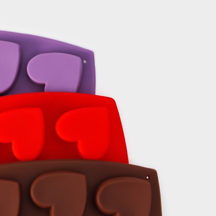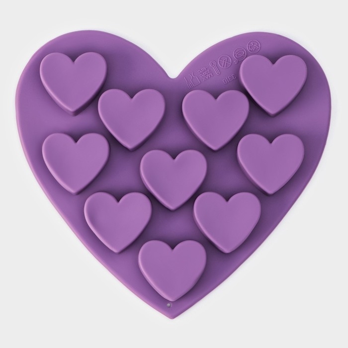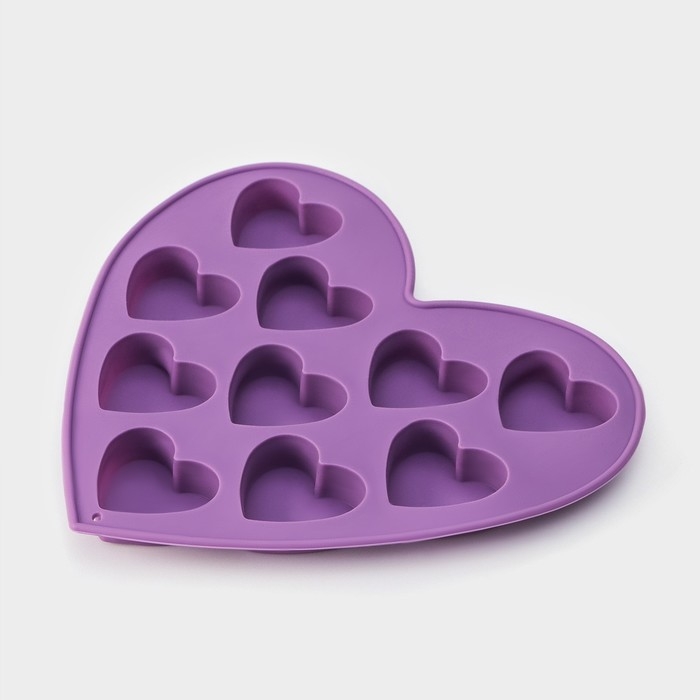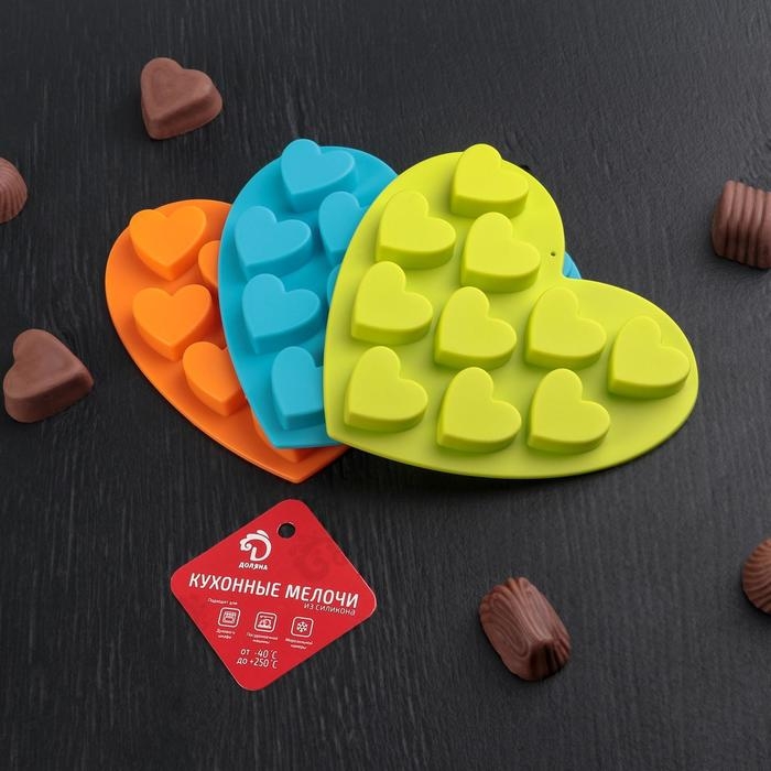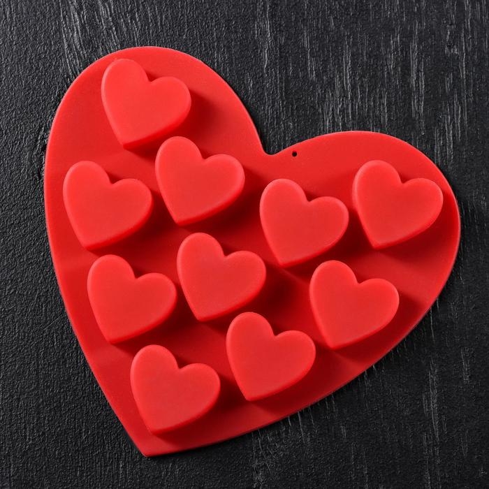 Форма для конфет и шоколада Доляна «Сердечки», силикон, 15×14,5×1,5 см, 10 ячеек, цвет МИКС