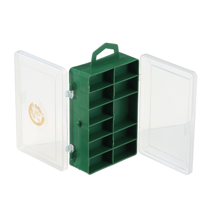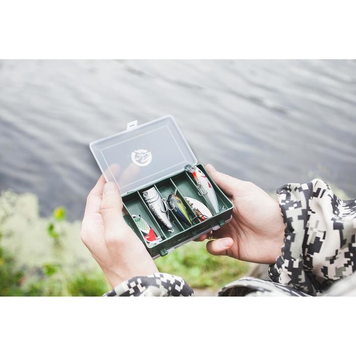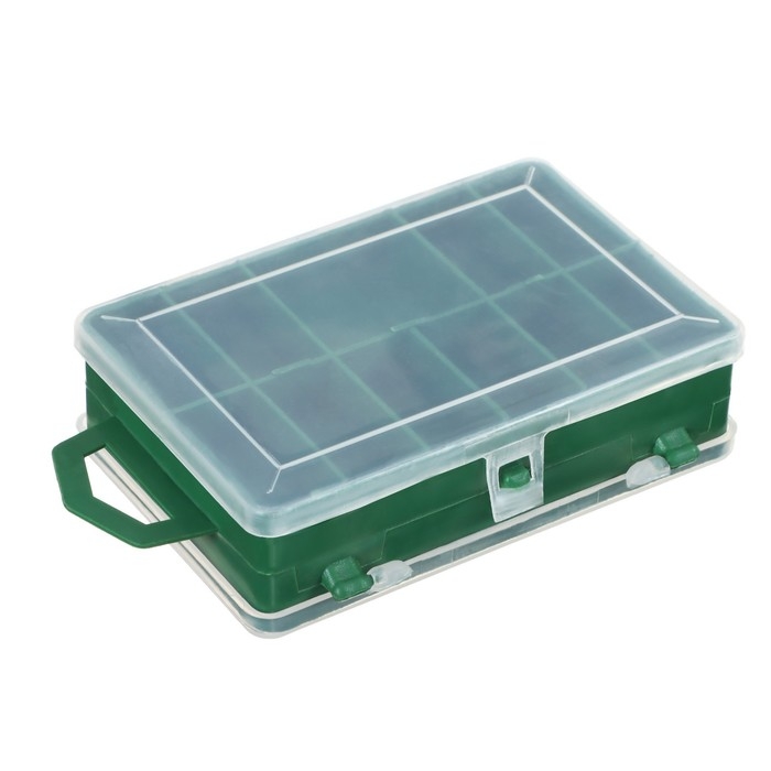 Двусторонняя коробочка изготовлена из качественного морозостойкого полипропилена, не вступающего в химическую реакцию с мягкими наживками. Отличается компактностью и универсальностью. Удобна для хранения оснастки, приманок и других рыболовных аксессуаров.