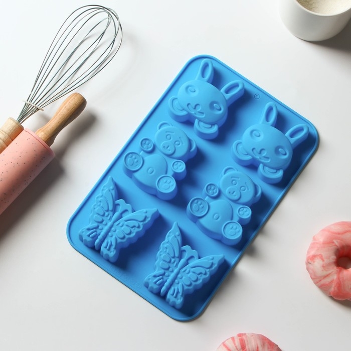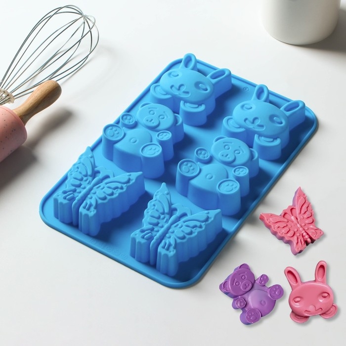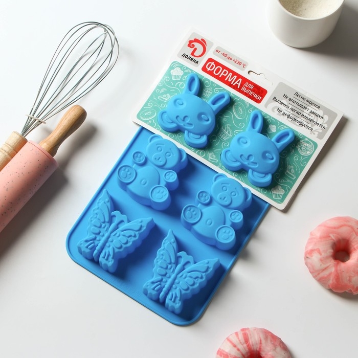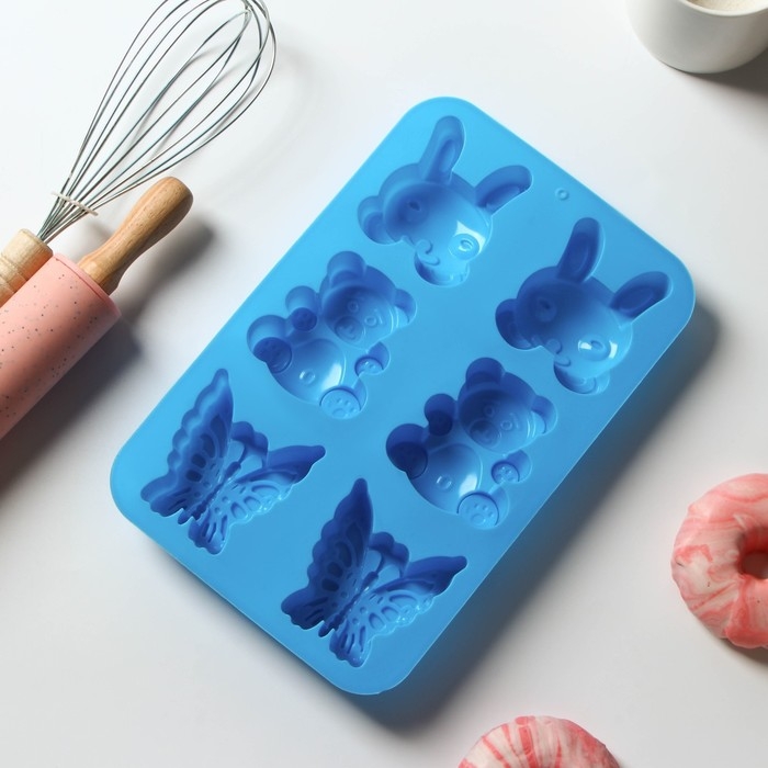 Форма для выпечки Доляна «Животные. Зоопарк», силикон, 26×17 см, 6 ячеек (7,2×6,4 см), цвет МИКС