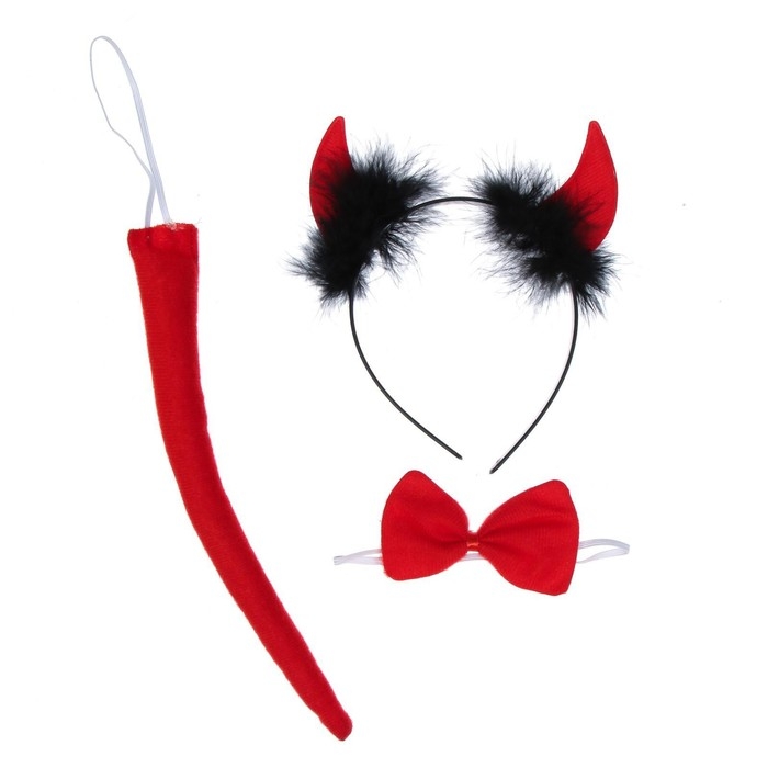 Карнавальный набор «Чёрт», 3 предмета: ободок, бабочка, хвост создаст яркий образ на вечеринке с переодеванием. Эффектные атрибуты дополнят маскарадный костюм и сделают ваш облик самым выразительным и стильным. Такие символичные аксессуары незаменимы для Хэллоуина, ярких встреч с друзьями и других тематических праздников. Они добавят необходимые нотки мистики и таинственности и точно выделят вас из толпы.