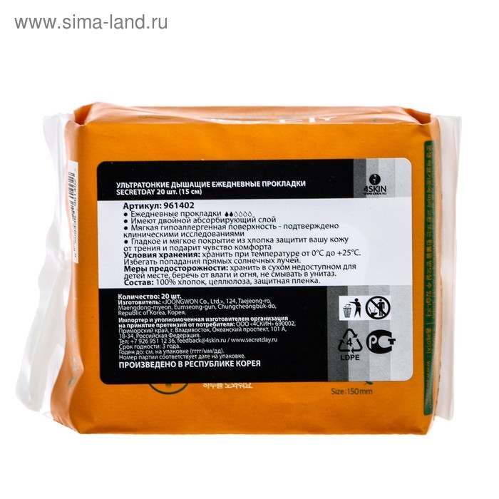 Прокладки ежедневные «Secret Day», ультратонкие дышащие, органические, 20 шт/уп