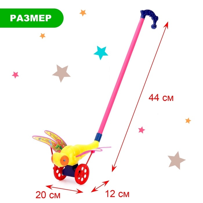 Каталка на палке «Стрекоза», длина ручки 40 см, МИКС