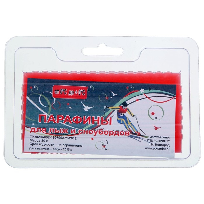 Парафин для лыж, от 0 до +6°C, 80 г, цвет красный