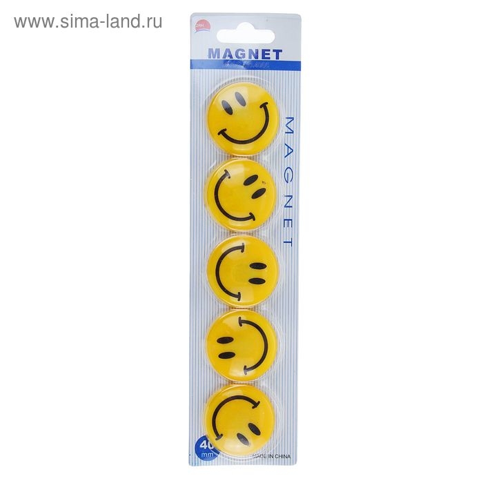 Набор магнитов для доски, 5 штук, "Смайл", d - 4 см, блистер