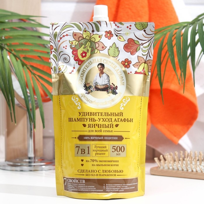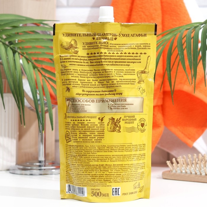 Шампунь для волос Удивительная Серия Агафьи «Яичный», 7 свойств, дой пак, 500 мл