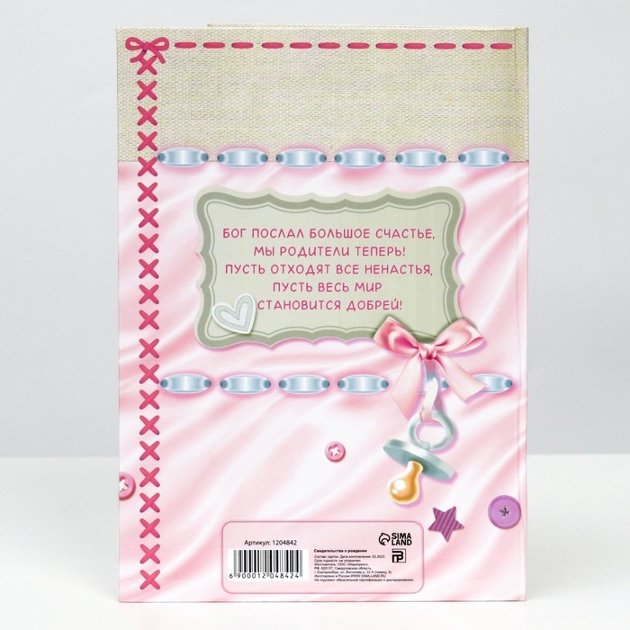 Папка для свидетельства о рождении «О рождении девочки», А5