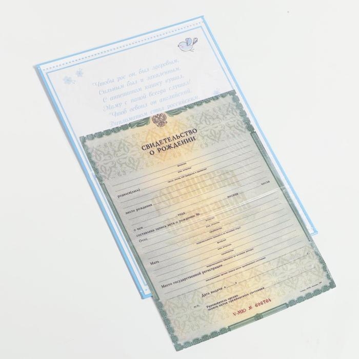 Обложка для свидетельства о рождении А5— полезный аксессуар, позволяющий хранить первый важный документ ребёнка в целости и сохранности. Материал обложки выполнен из плотного переплётного картона 1,25 мм, приятен на ощупь. Внутри — плотный файл размером А4. В такой обложке документ сохранится и не помнётся даже при активном использовании. Папка для свидетельства о рождении станет приятным и нужным подарком молодым родителям.