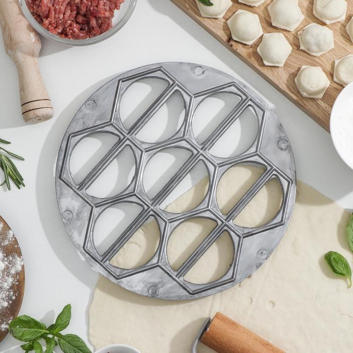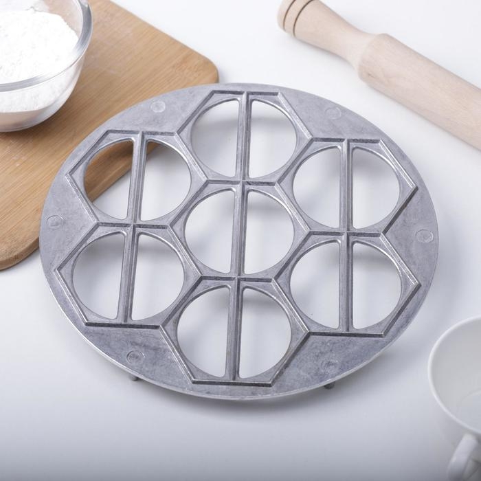 Изделие представляет собой круглую металлическую форму с аккуратными ячейками на небольших ножках. Порадуйте любимых домашними варениками с самыми изысканными вкусами!