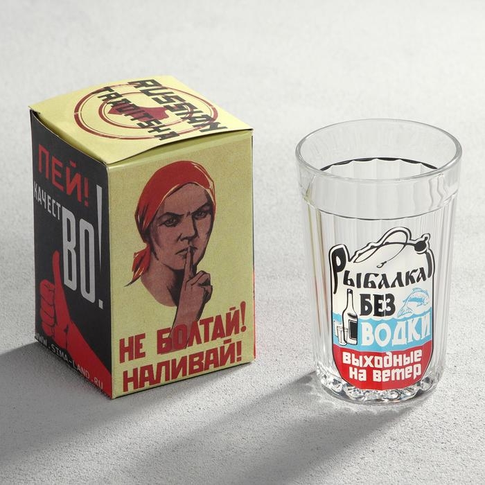 Стакан граненый "Рыбалка без водки..", 250 мл