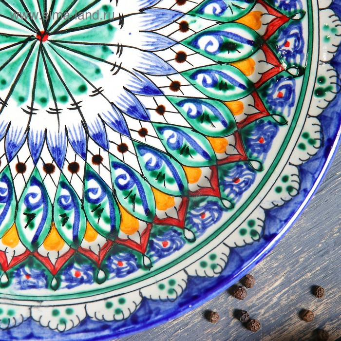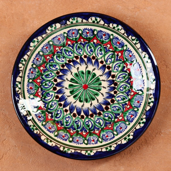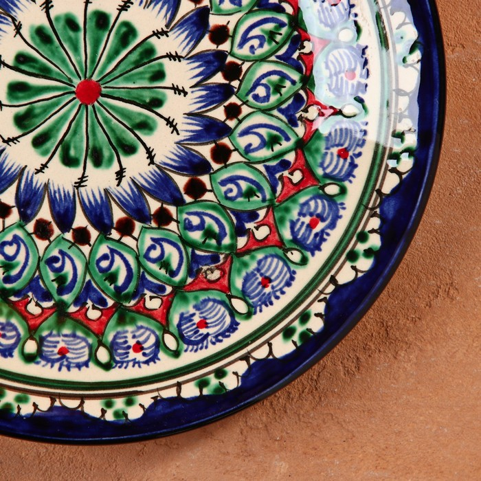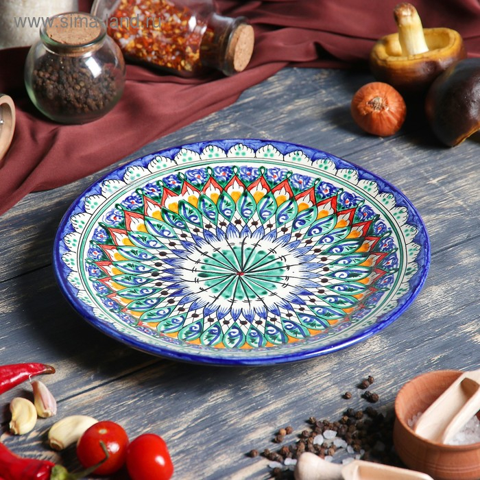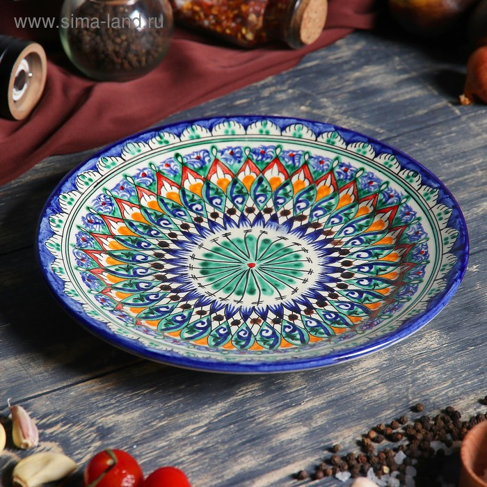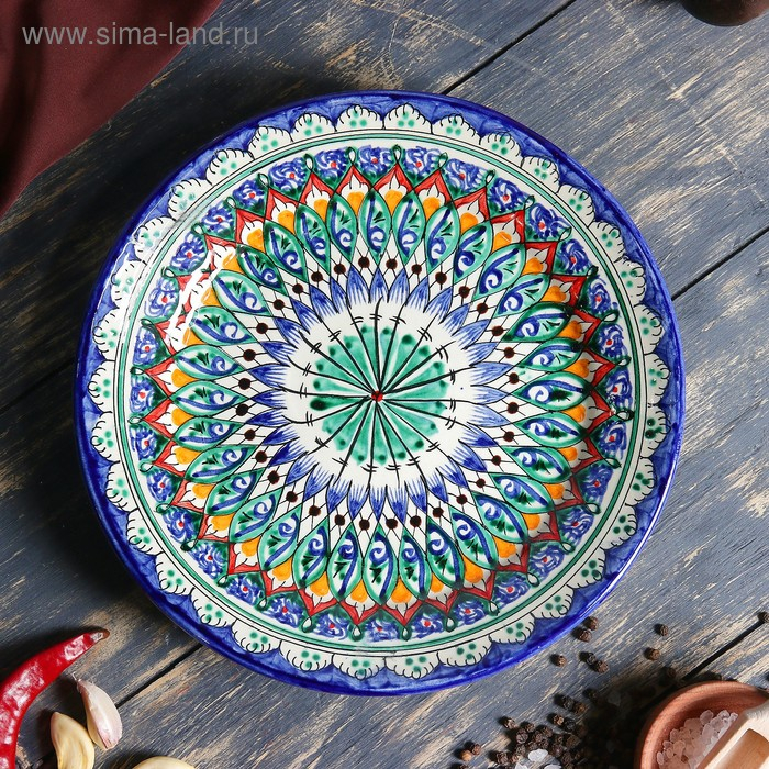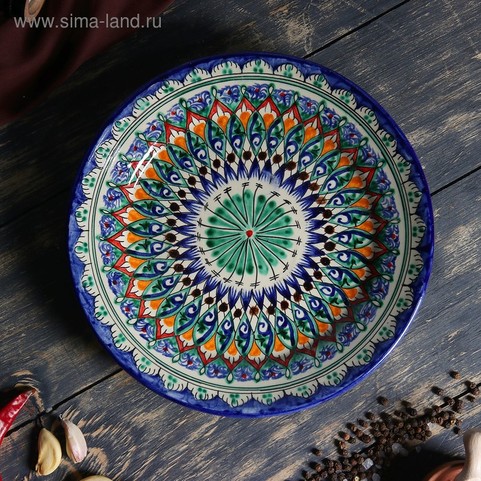 Тарелка Риштанская Керамика "Цветы", 22 см, синий