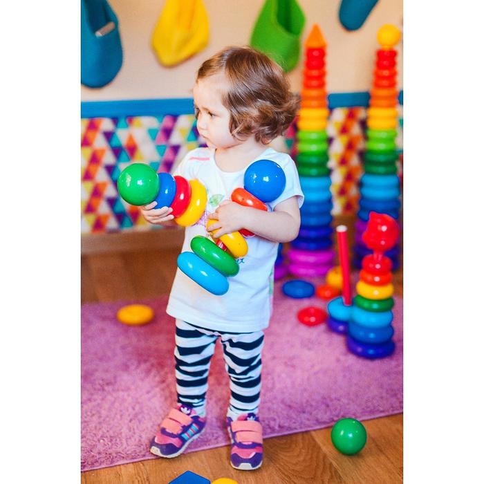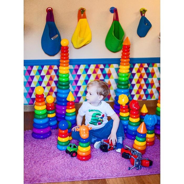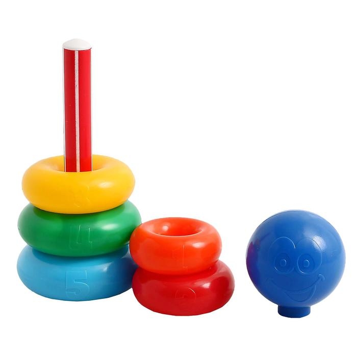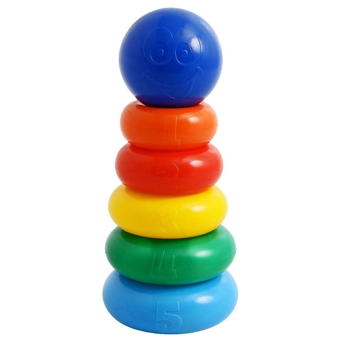 Пирамидка — одна из первых развивающих игрушек малыша, которая состоит из основы-стержня, круглых колец и наконечника в виде шара со смайликом.