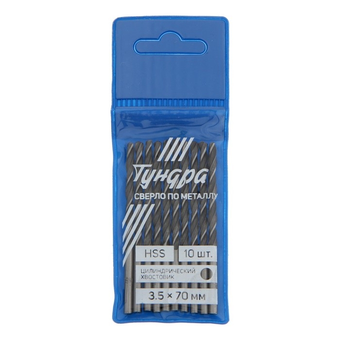 Сверло по металлу ТУНДРА, HSS, цилиндрический хвостовик, 3.5 х 70 мм, 10 шт.