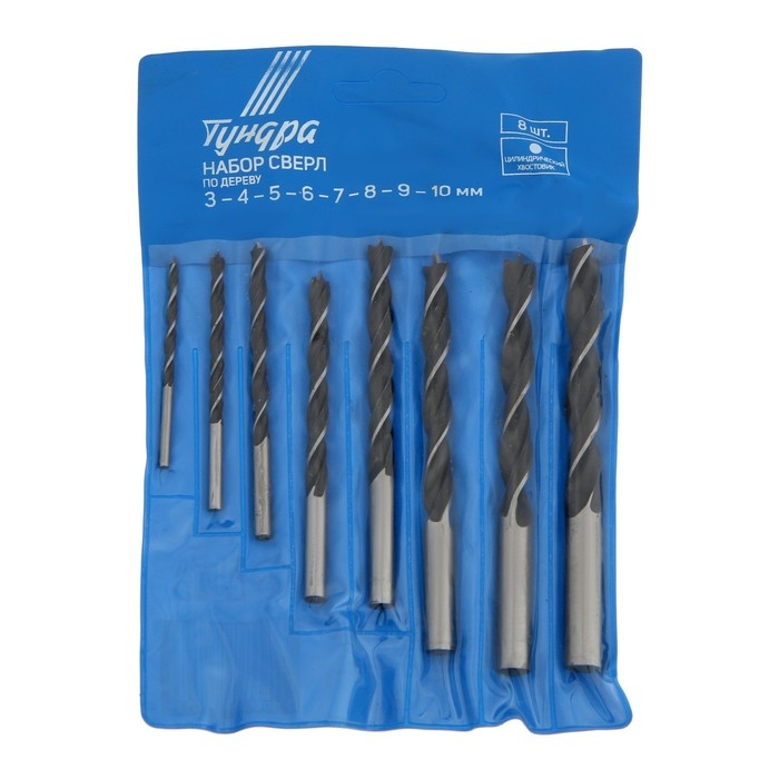 Набор сверл по дереву ТУНДРА, цилиндрический хвостовик, 3-4-5-6-7-8-9-10 мм, 8 шт.