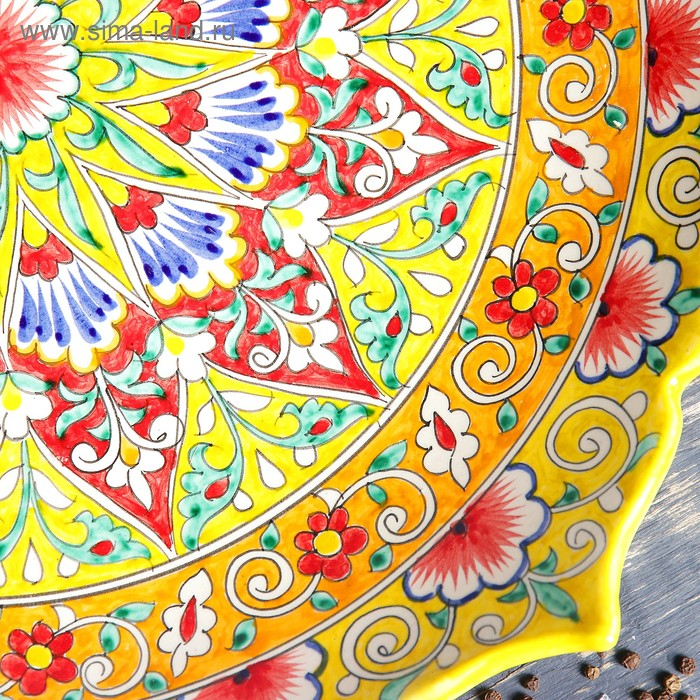 Ляган Риштанская Керамика "Цветы", 42 см, жёлтый, рифлёный