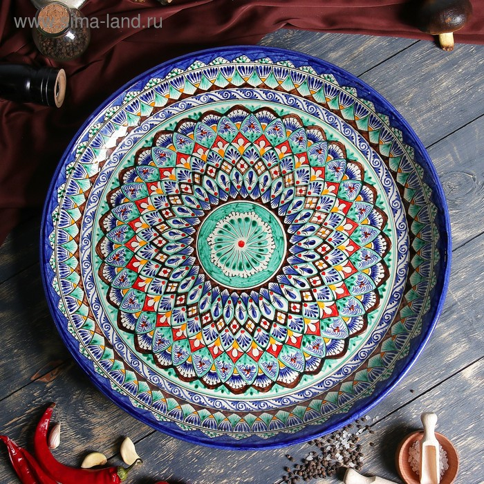 Ляган Риштанская Керамика "Узоры", 46 см, синий микс