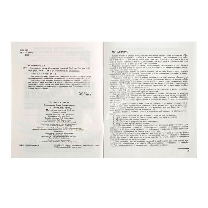 Рабочая тетрадь для детей 5-7 лет «Я составляю числа», Колесникова Е. В.