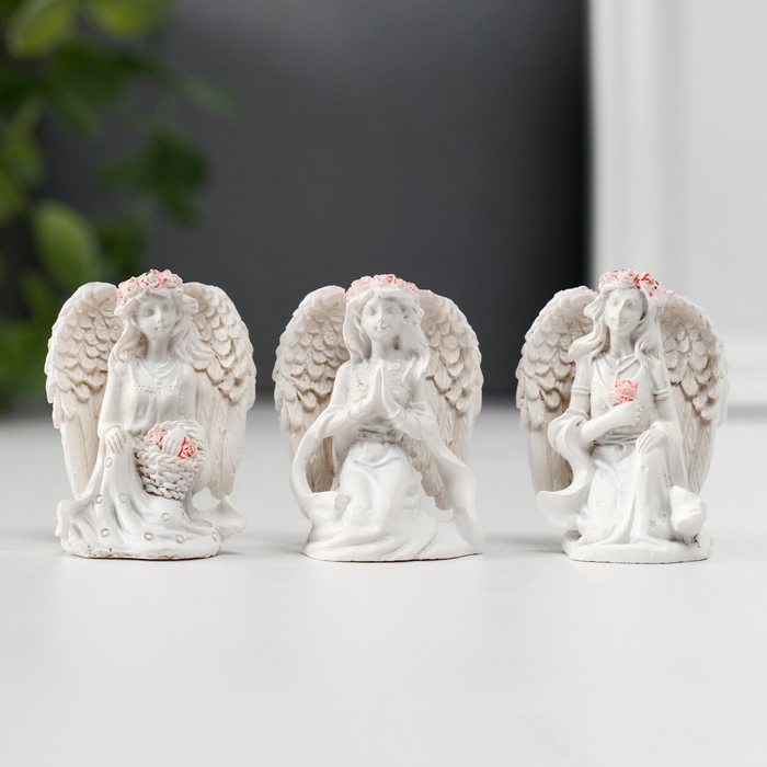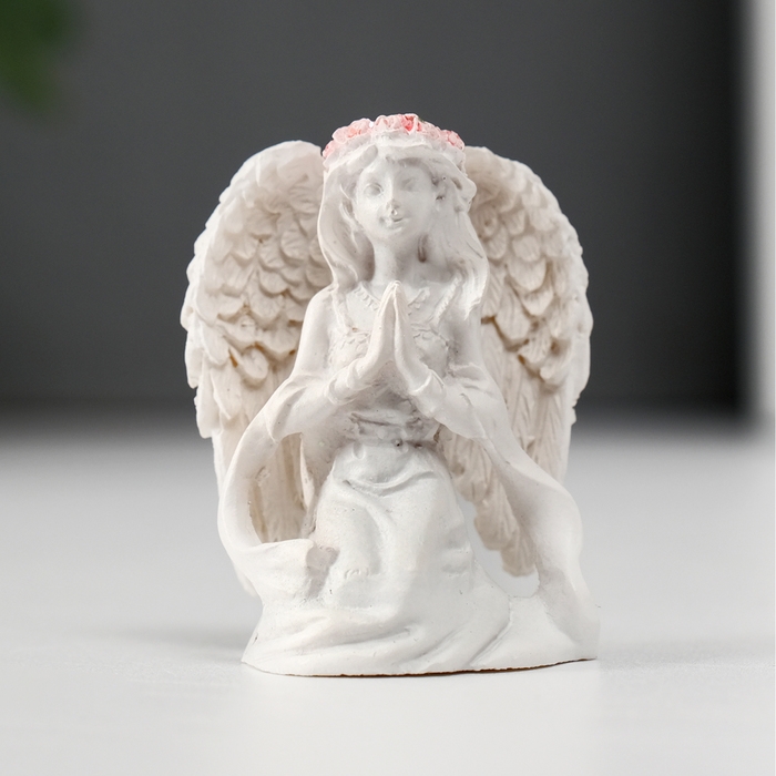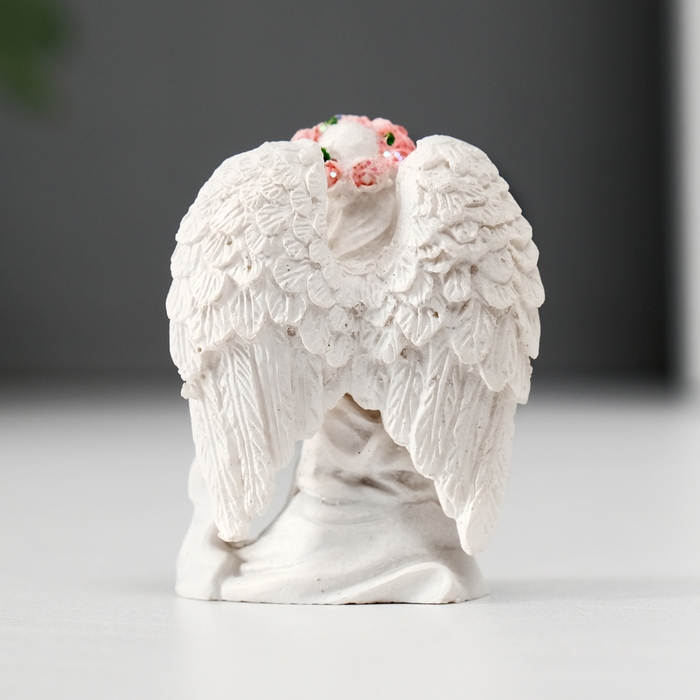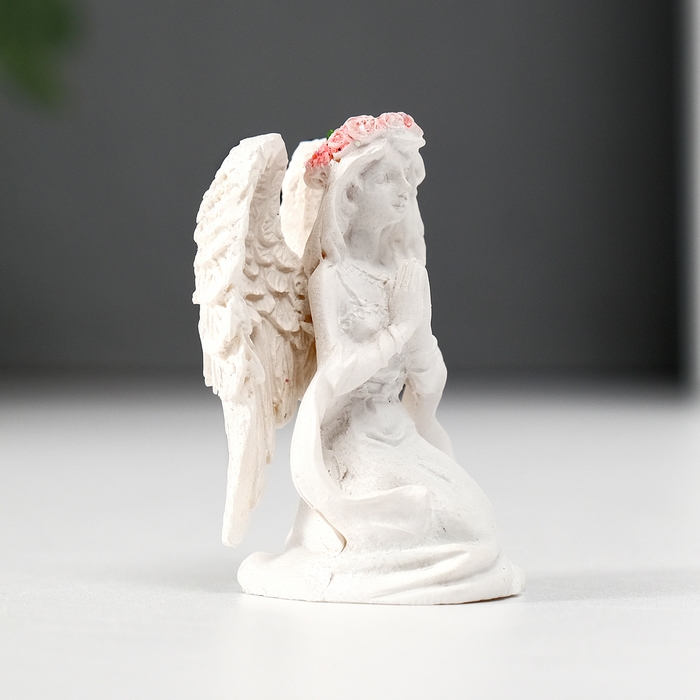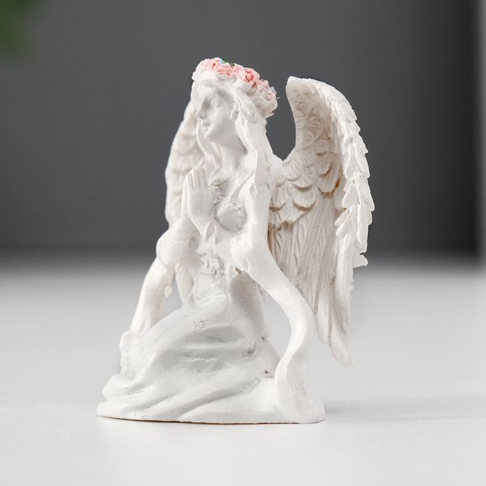 Сувенир полистоун "Ангел-девушка в розовом венке - благословение" МИКС 3х4х2,5