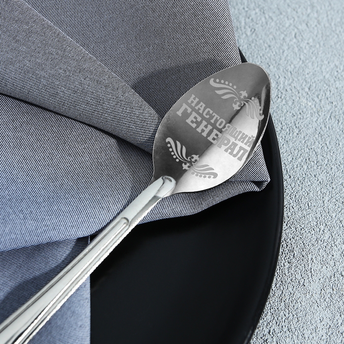 Ложка чайная с гравировкой «Настоящий генерал», на подарочной открытке, 3 х 14 см.
