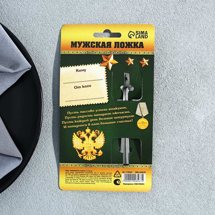 Ложечка преподносится на яркой дизайнерской открытке, на обороте вы найдёте место для подписи, что сделает подарок ещё более личным.
