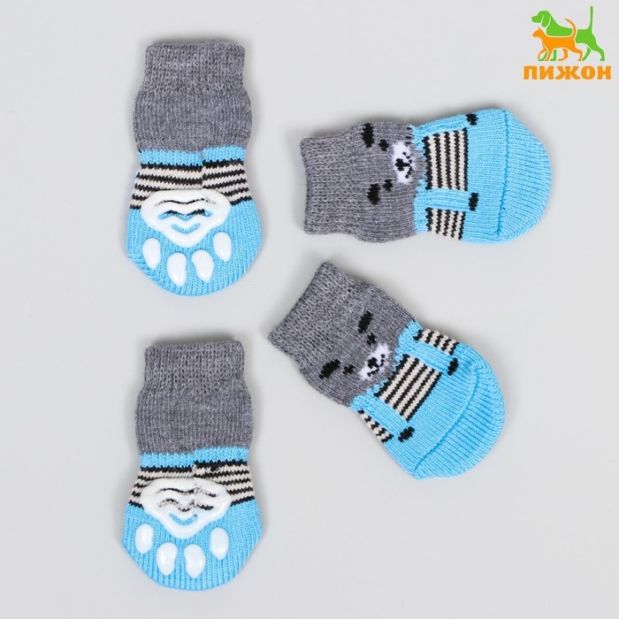 Носки нескользящие "Мишки", размер L (3,5/5 * 9 см), набор 4 шт, серо-голубые