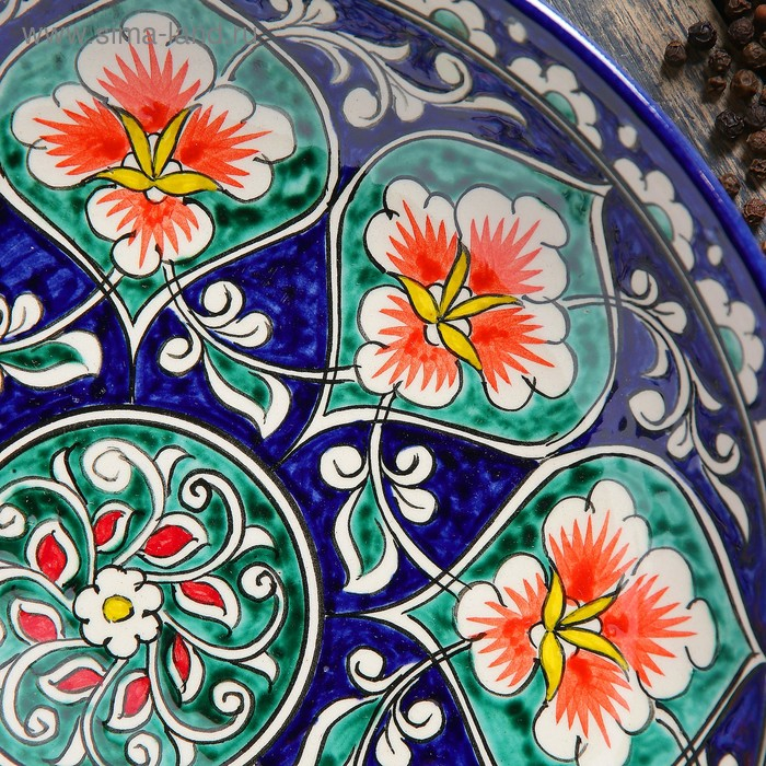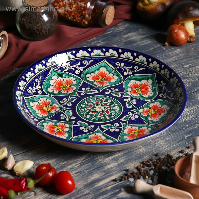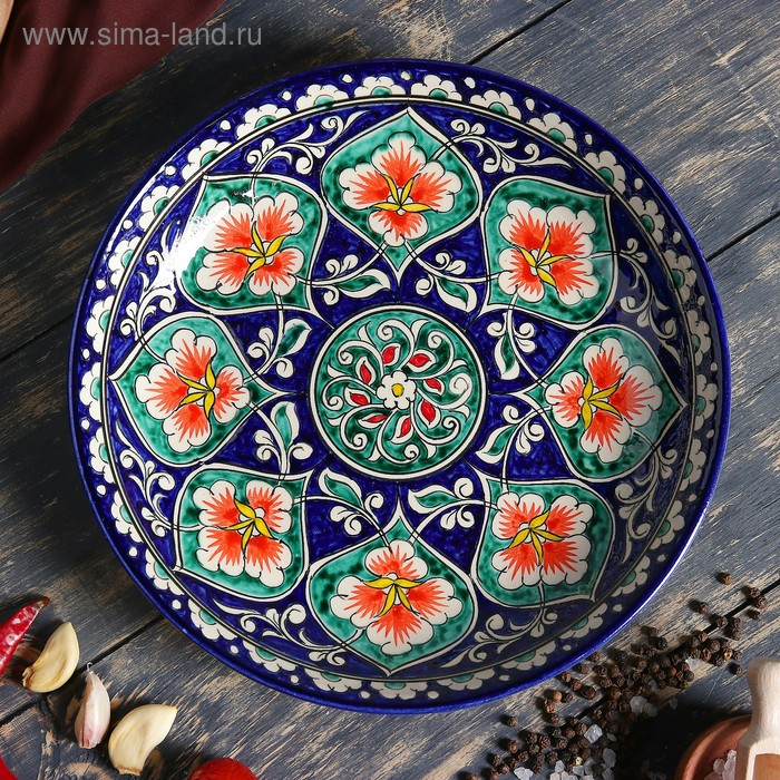 Ляган Риштанская Керамика "Цветы", 25 см, синий