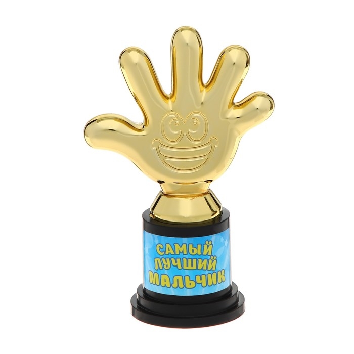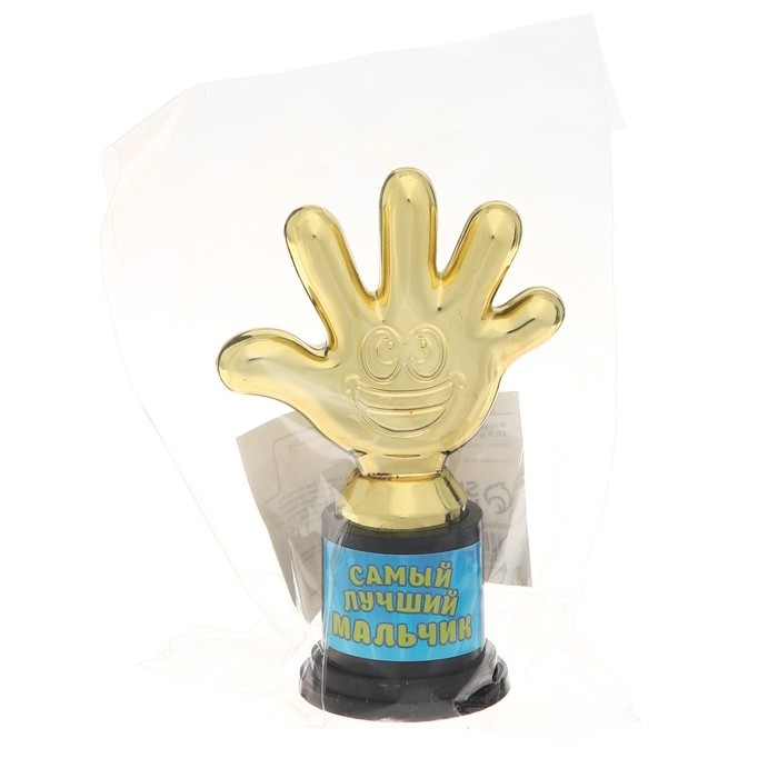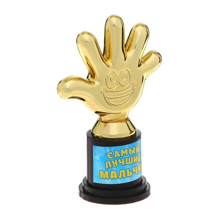 Наградная фигура «Самый лучший мальчик», пятерня, кубок, пластик, золото, 6,5 х 10,5 х 4 см.