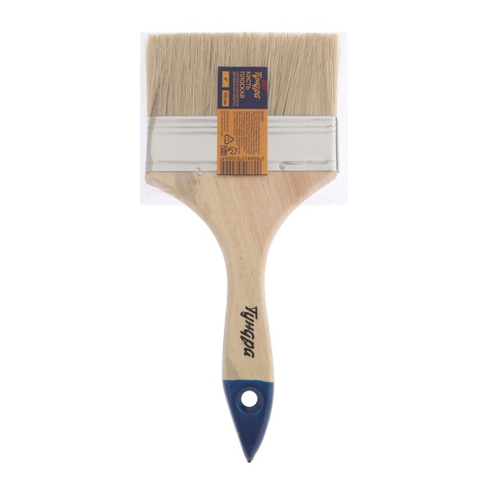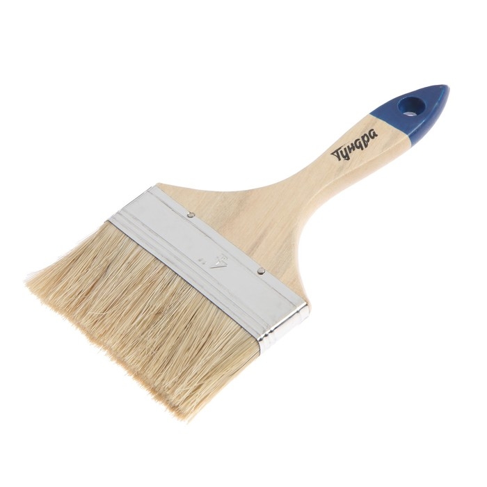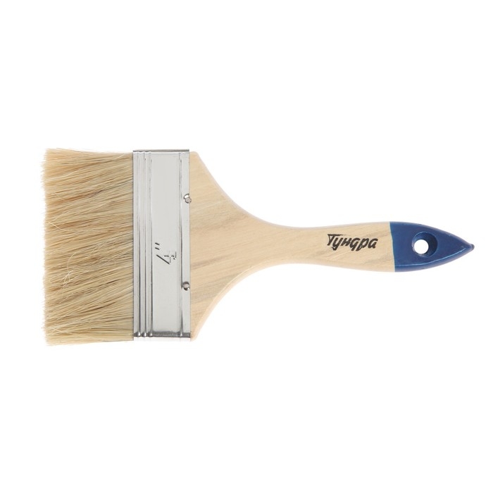 Кисть плоская ТУНДРА, натуральная щетина, деревянная рукоятка, 4", 100 мм