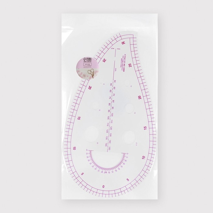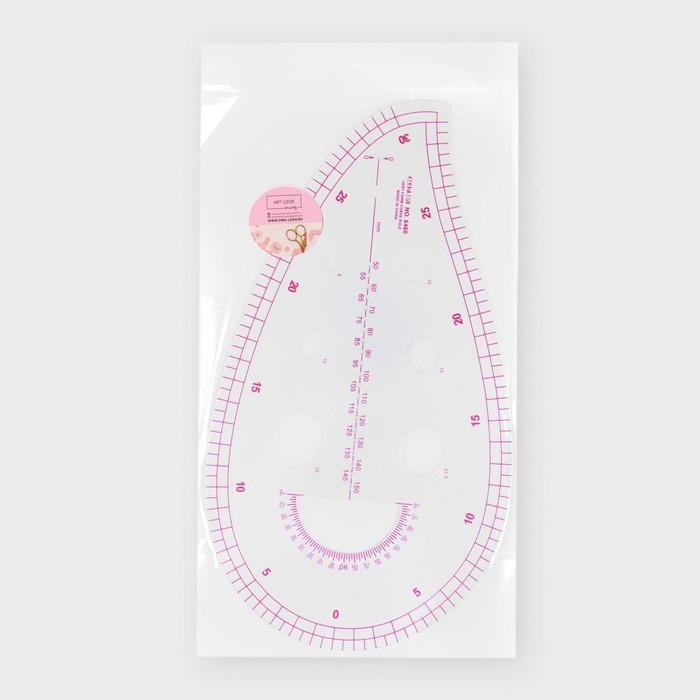 Лекало портновское метрическое «Капля», с проймой, 25 × 13,5 см, толщина 0,5 мм, цвет прозрачный