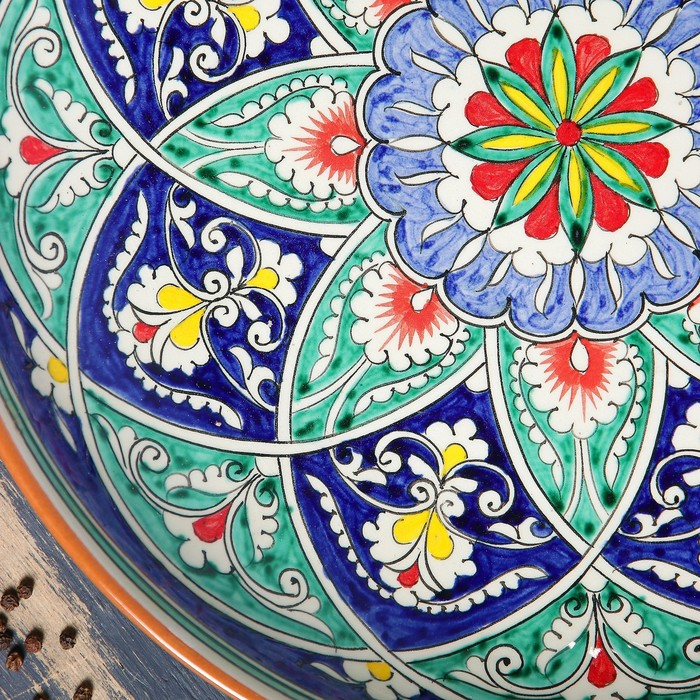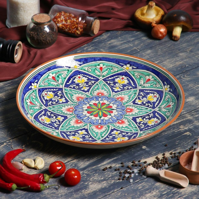 Ляган Риштанская Керамика "Цветы", 32 см, синий
