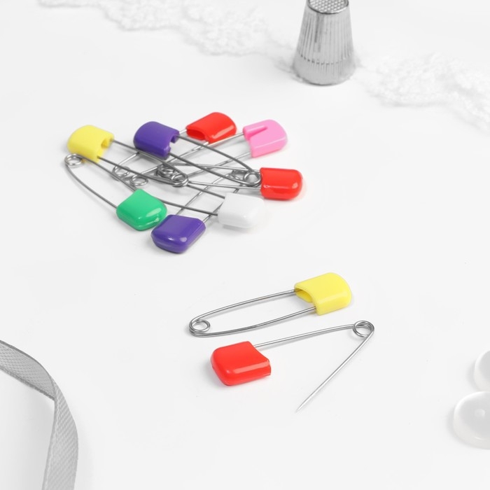 Булавки английские, безопасные, 38 мм, 10 шт, цвет разноцветный
