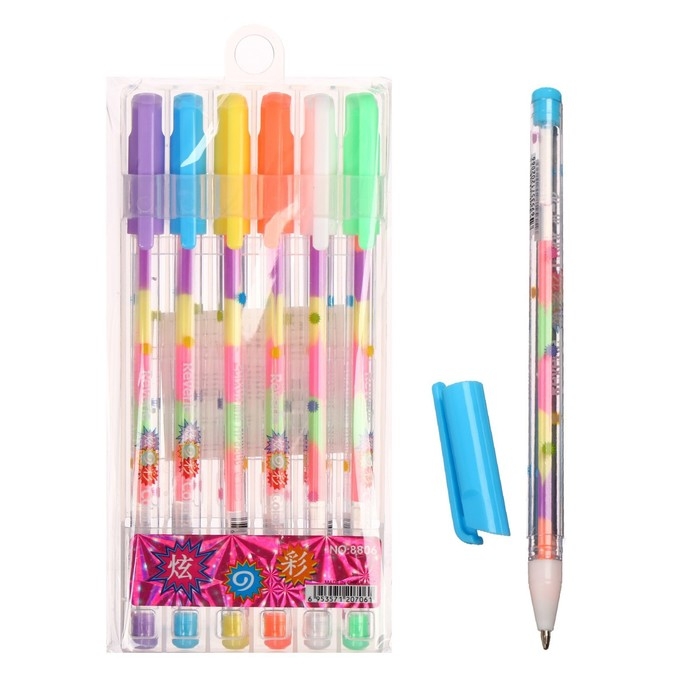 Набор гелевых ручек 6 штук, разноцветные стержни, в пластиковой упаковке